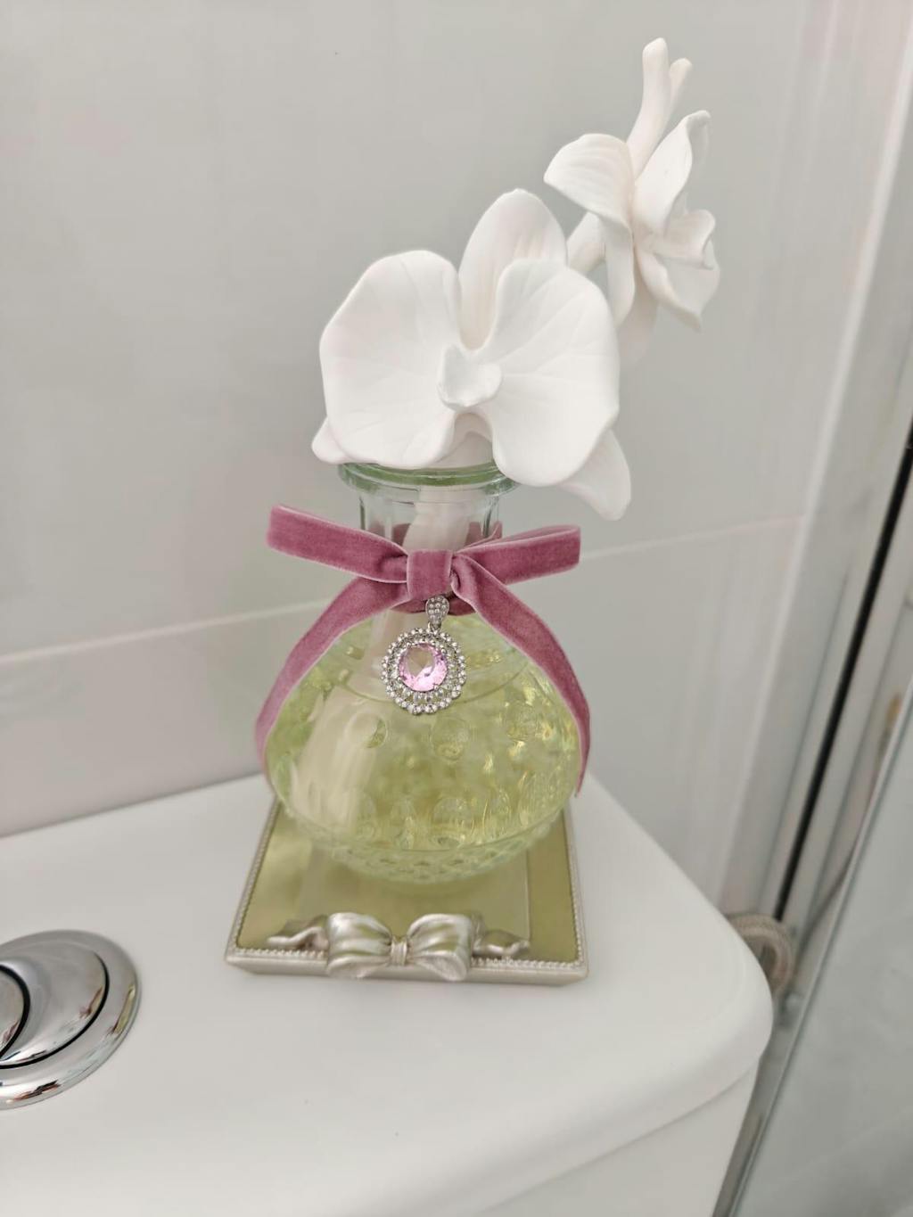 This base is impressive. It works really well with porcelain flower diffuser and most importantly it lasts for a very long time. I filled it more than two weeks ago and it still stays the same, even though my bathroom is on the warm side. I mixed it with fresh linen perfume and the room smells amazing. Great product, highly recommend it.